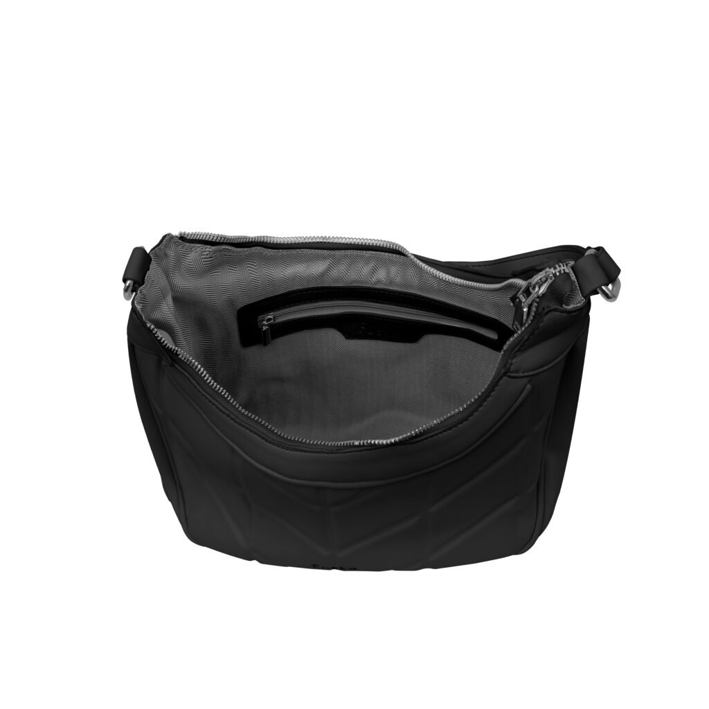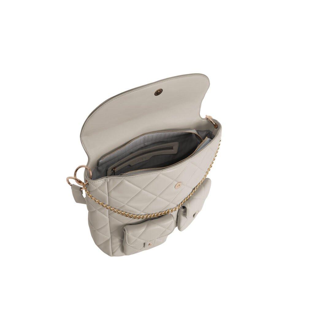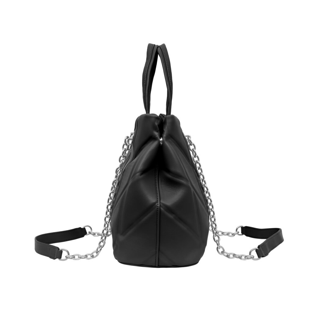 Design: Features a classic shape with a decorative belt and buckle detail at the top. The side panels have a soft structure that can be tucked in or left out for a different silhouette.