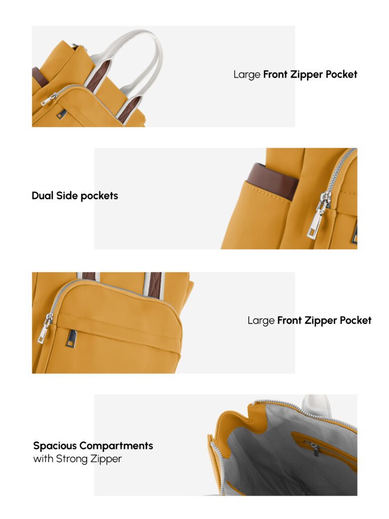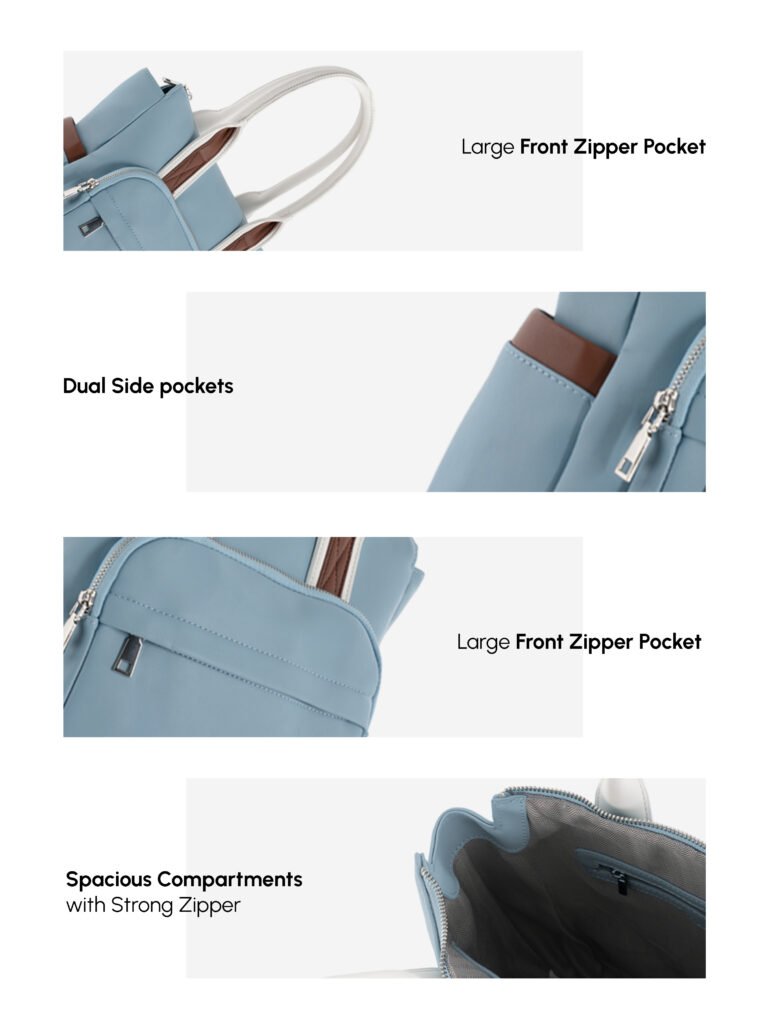 Design: Features a practical, multi-pocket design including a front zippered pocket and open side pockets for easy access to essentials.