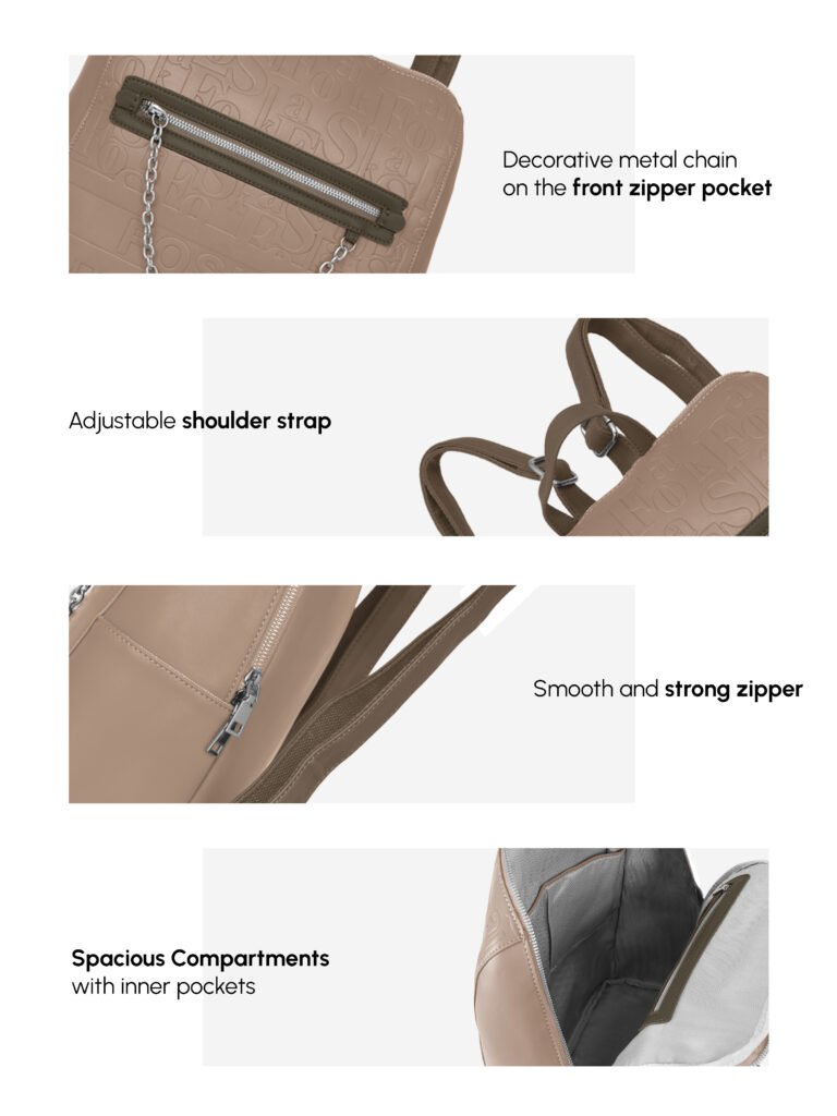 This stylish and functional Foska backpack is perfect for daily use, blending a modern, sophisticated design with practical features for organization and comfort.
